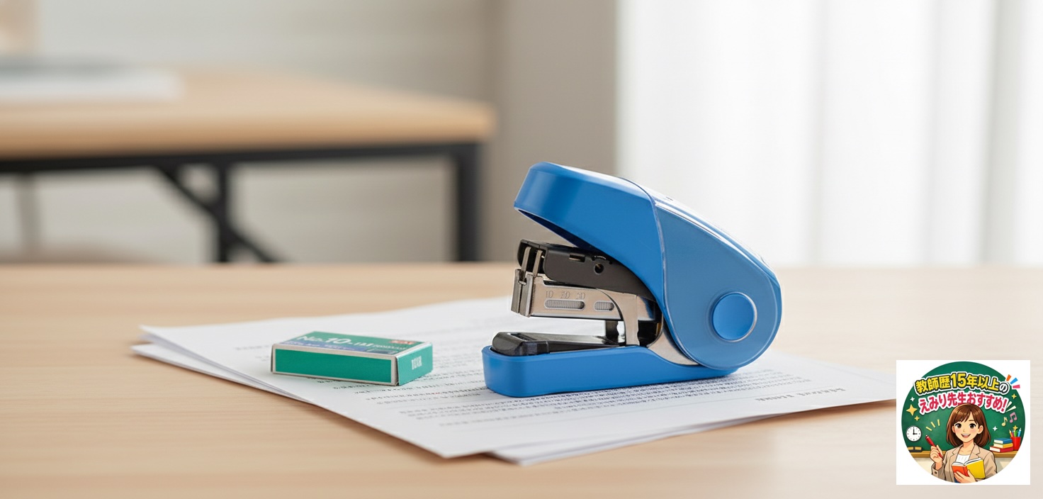 一番困るのが、大事な場面での「針切れ」です。 このモデルは本体に予備の針を100本ストックしておけるポケットが付いています。 授業の直前や会議中に慌てることがなくなるだけでなく、同僚の先生に「これ使いやすいよ」と自信を持って貸してあげられる、そんな信頼感も育ててくれます。